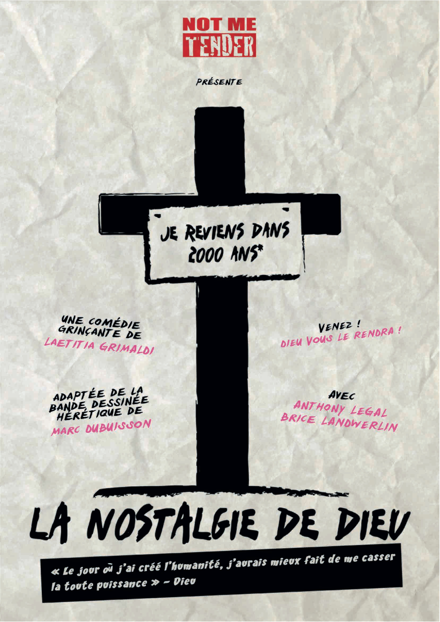 Pas de bol, ce Dieu là ne correspond pas tout à fait à ce qu’il avait imaginé…”La Nostalgie de Dieu” a reçu le Prix du Meilleur premier album des lycéens picards 2010. Vous aurez donc le plaisir de retrouver les textes mordants de “la nostalgie de Dieu” , ainsi que du “Complexe de Dieu”, sur les planches. Venez, Dieu vous le rendra… Ou pas. La nostalgie de Dieu, la comédie grinçante, adaptée de la bande dessinée hérétique de Marc Dubuisson.