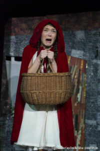 Il se triture les méninges pour trouver les ingrédients nécessaires à l’élaboration d’un conte “qui fait peur”, aidé d’un accessoiriste facétieux. Ce qu’il imagine se joue alors sous les yeux du spectateur, se transforme et s’améliore malgré un loup récalcitrant qui ne veut pas faire ce que l’auteur lui demande. C’est finalement Marie-Jeanne qui lui soufflera les clés de l’histoire du Petit Chaperon rouge.