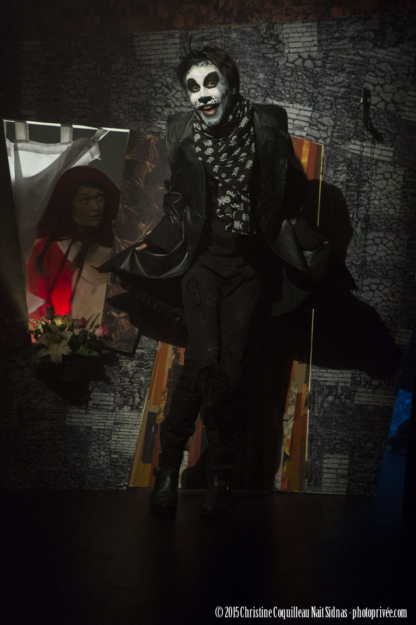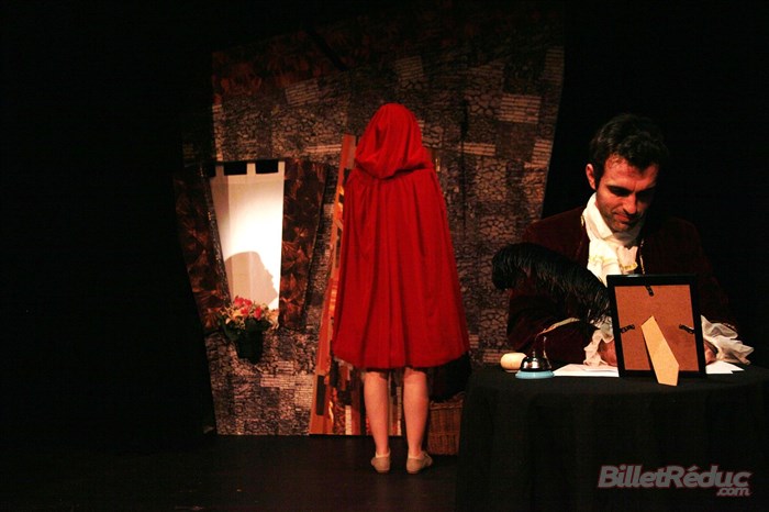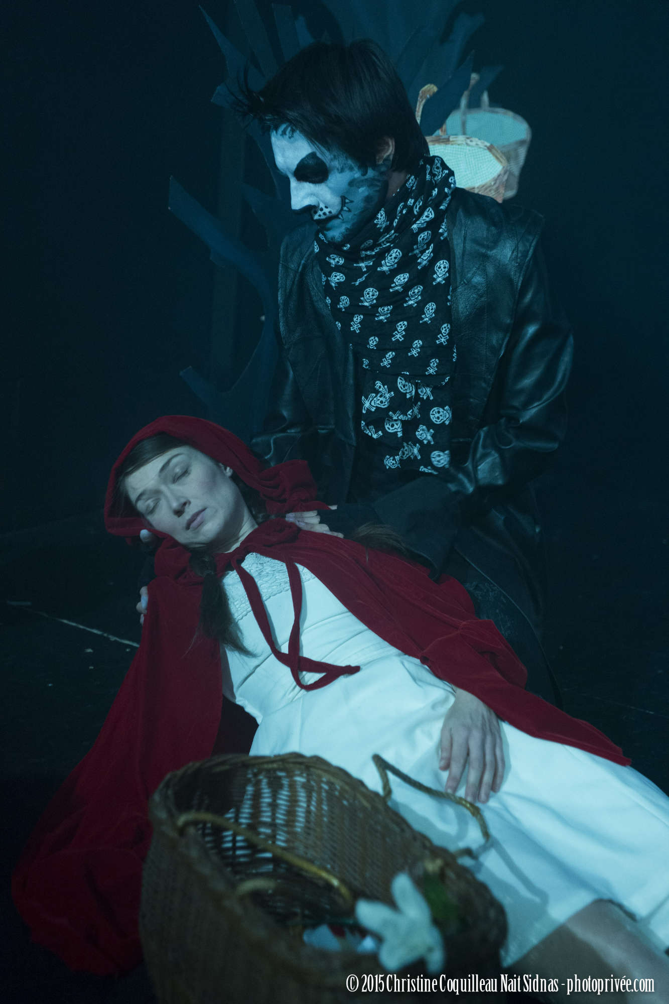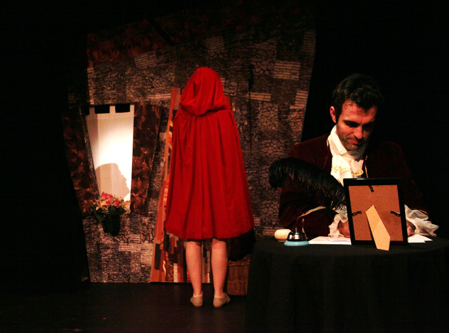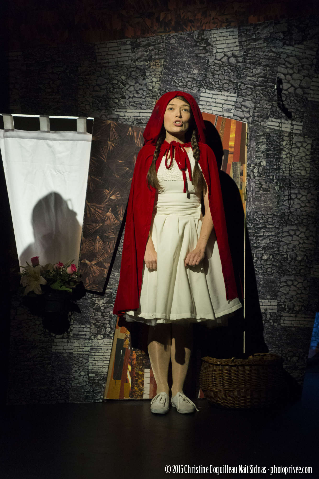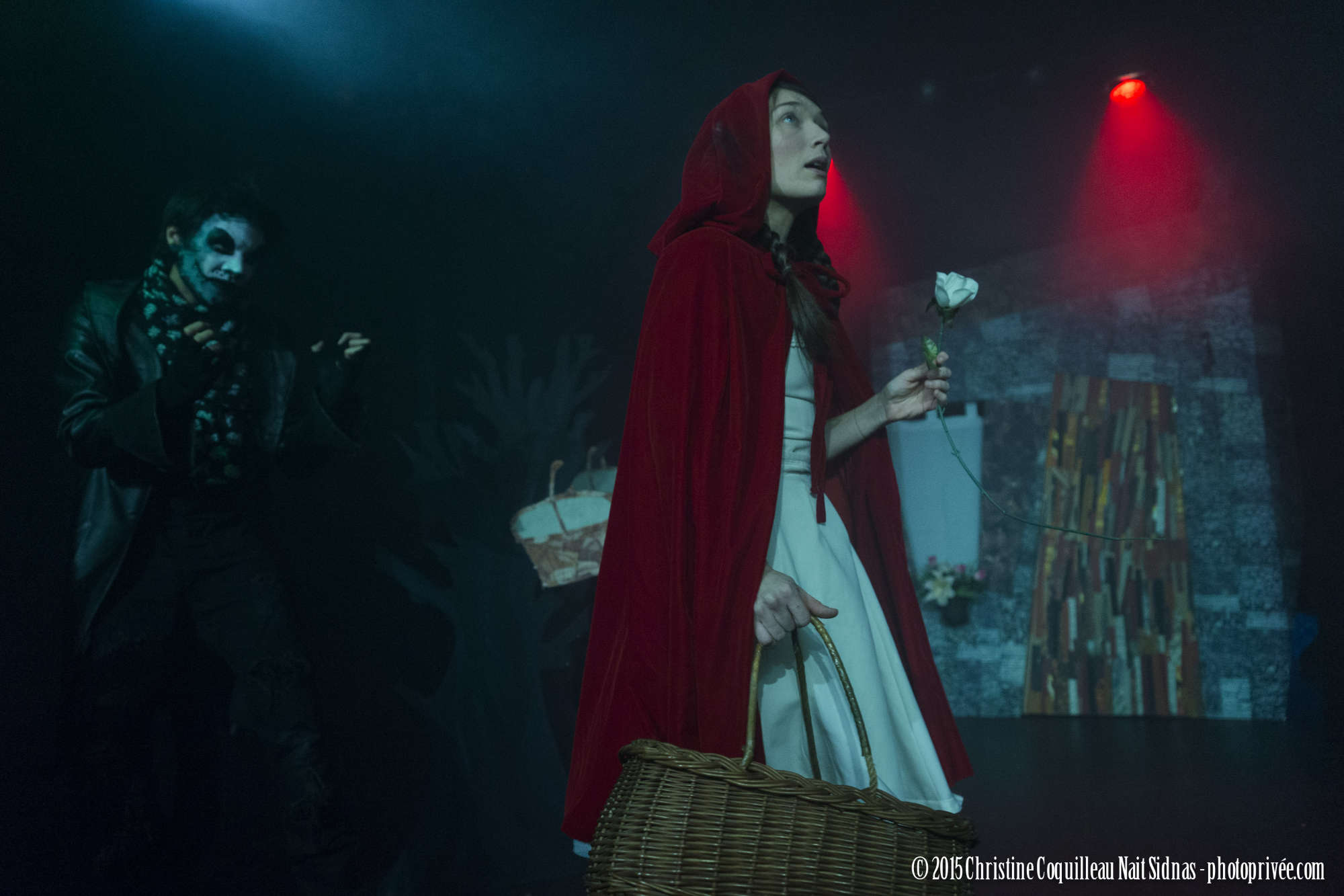 Il se triture les méninges pour trouver les ingrédients nécessaires à l’élaboration d’un conte “qui fait peur”, aidé d’un accessoiriste facétieux. Ce qu’il imagine se joue alors sous les yeux du spectateur, se transforme et s’améliore malgré un loup récalcitrant qui ne veut pas faire ce que l’auteur lui demande. C’est finalement Marie-Jeanne qui lui soufflera les clés de l’histoire du Petit Chaperon rouge.