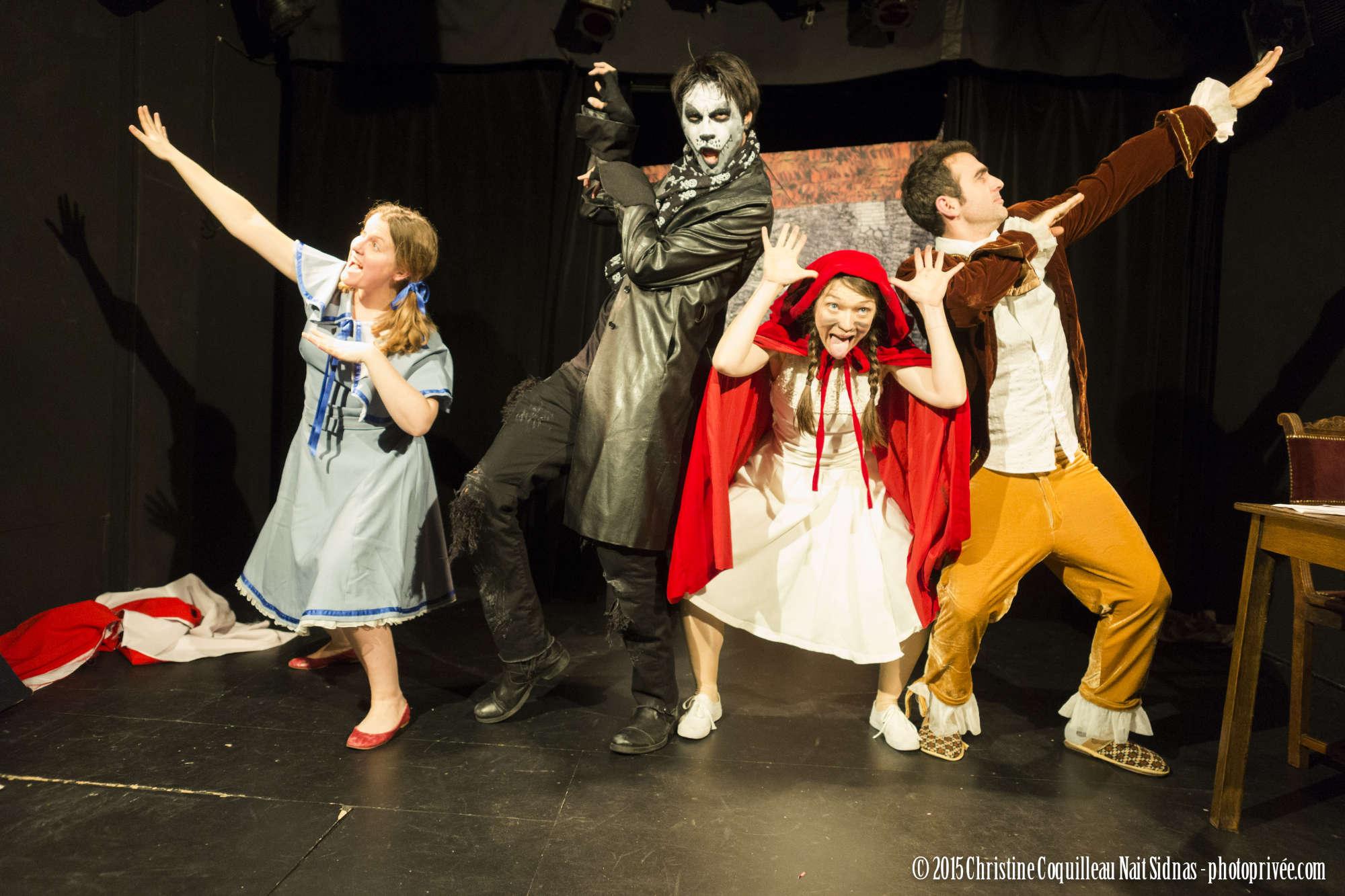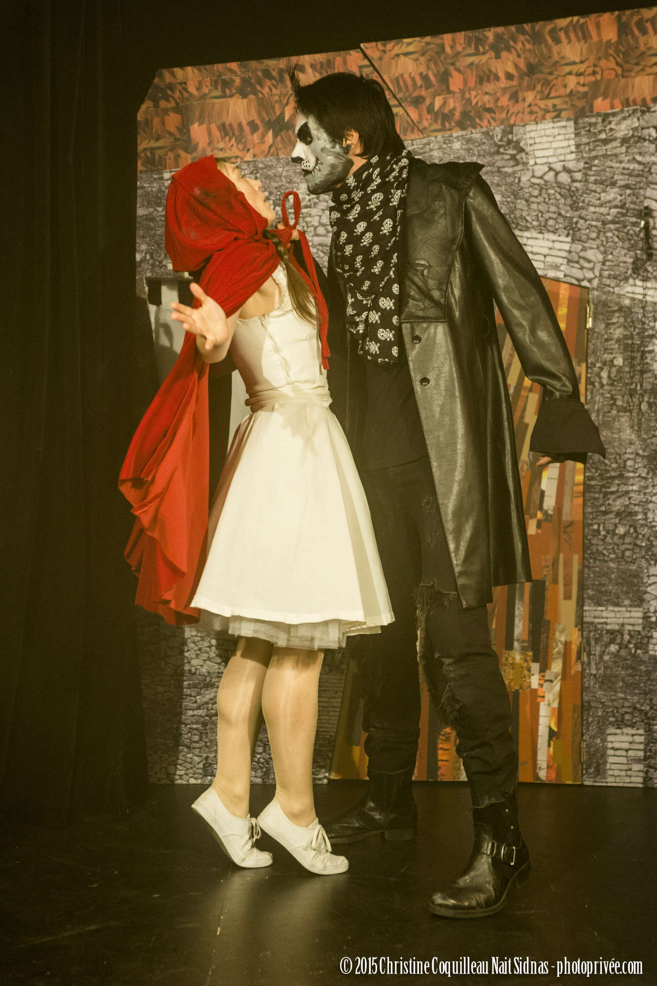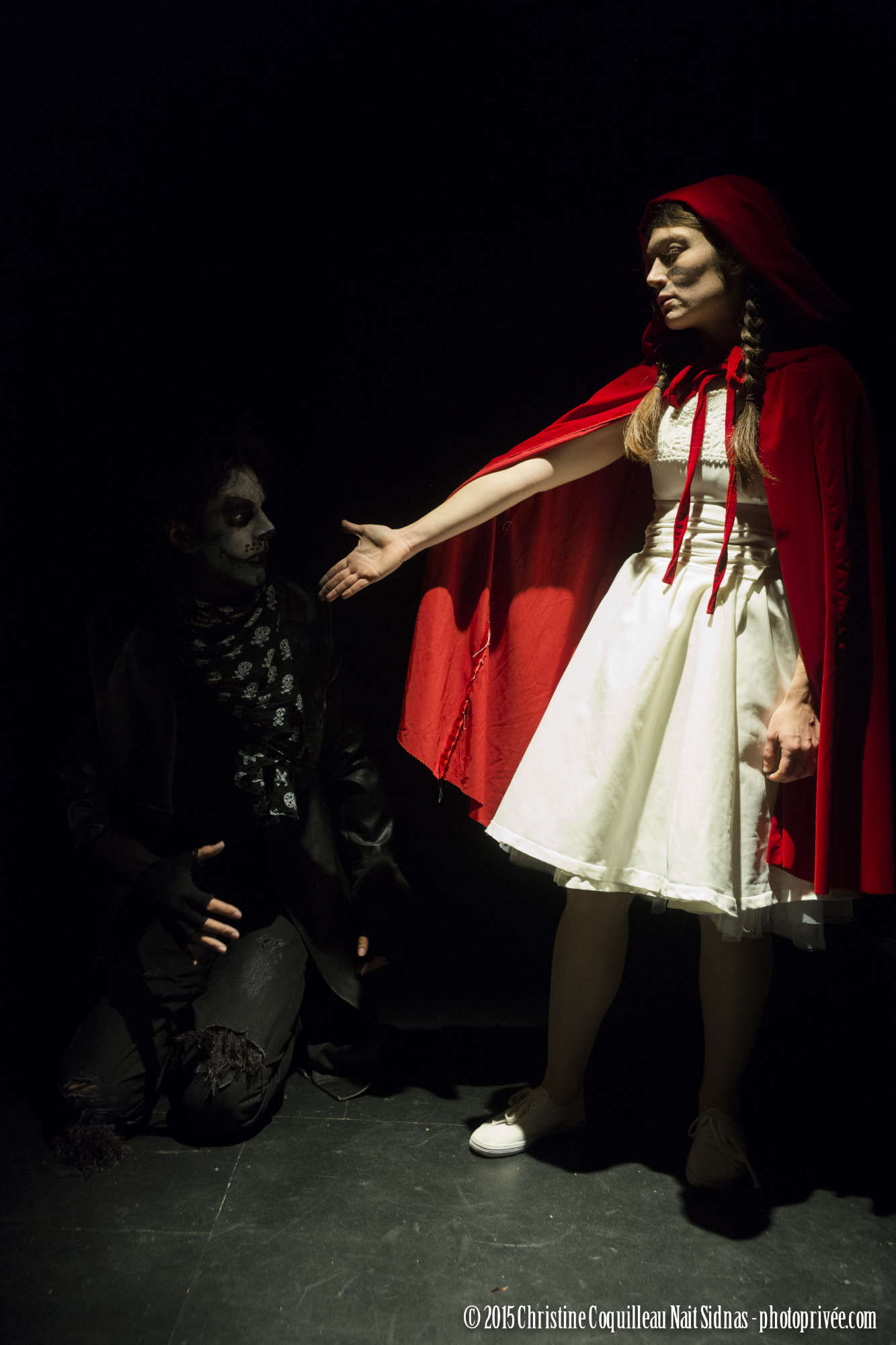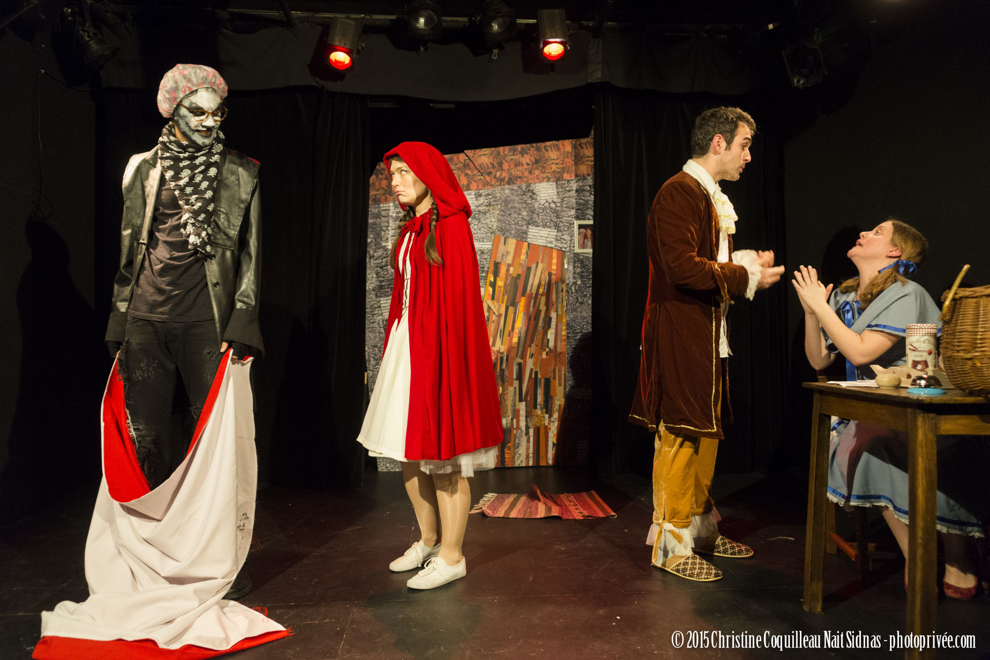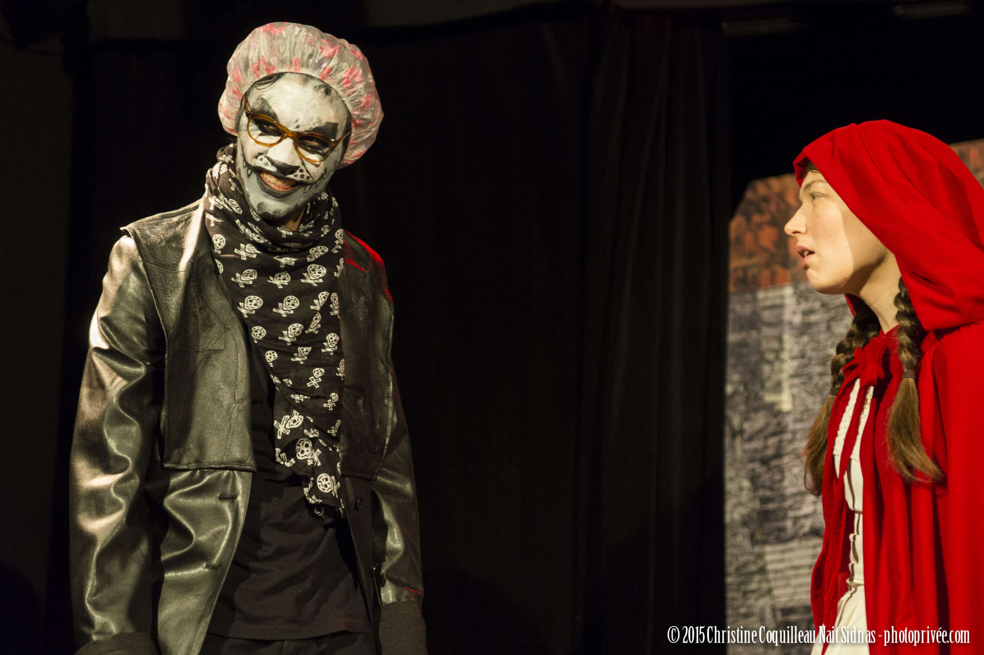 Il se triture les méninges pour trouver les ingrédients nécessaires à l’élaboration d’un conte “qui fait peur”, aidé d’un accessoiriste facétieux. Ce qu’il imagine se joue alors sous les yeux du spectateur, se transforme et s’améliore malgré un loup récalcitrant qui ne veut pas faire ce que l’auteur lui demande. C’est finalement Marie-Jeanne qui lui soufflera les clés de l’histoire du Petit Chaperon rouge.